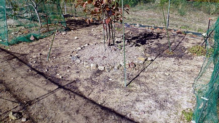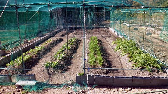 蒔いた。蒔いた種をカラスに穂ぜられないよう網を下ろした。 .