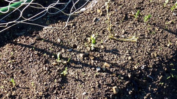 追加で種蒔きしたダイコンは芽が出てきている。