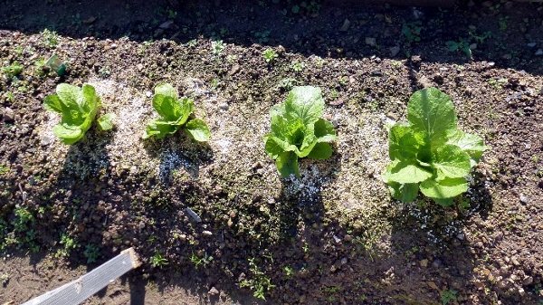 ホウレンソウは葉が大きくなりだし虫害もみあたらない。