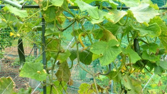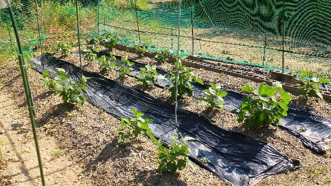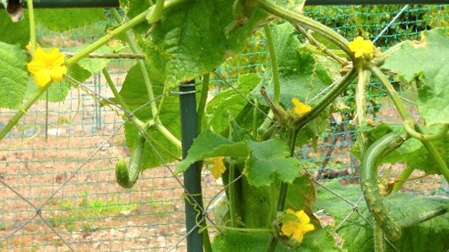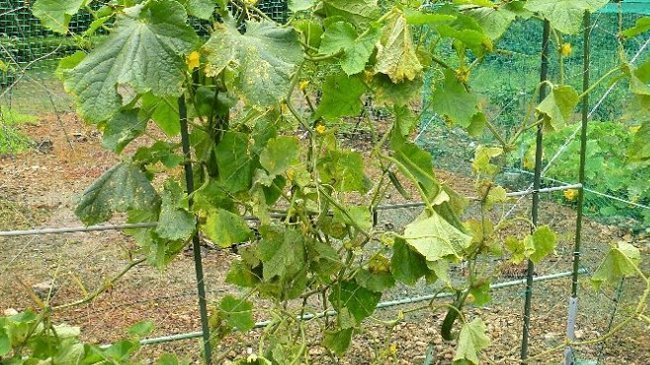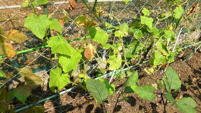 キュウリの上部にはまだ花が咲いているが、もうキュウリは終わり