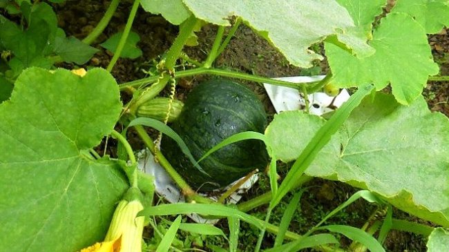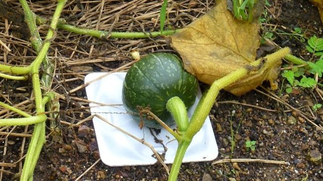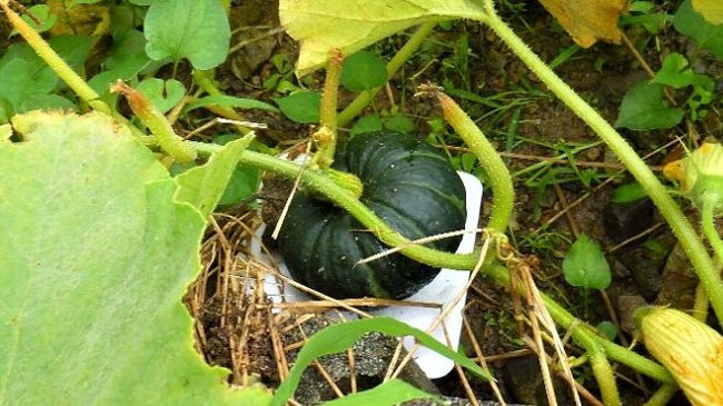 栗カボチャが2個大きくなったので少々早いかとも思ったが今日収穫し、