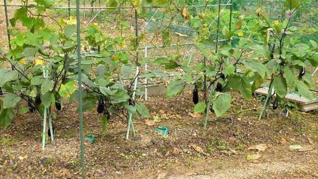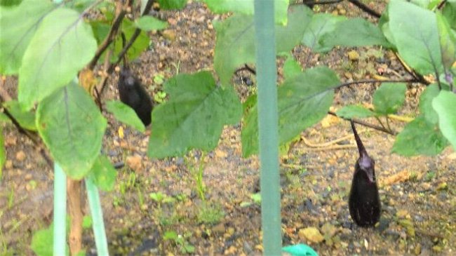 ナスビと水ナスは大きな形にはならないがまだ採れそう。