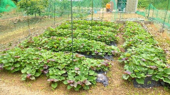 安納芋一種類だけ植付けたサツマイモは葉が横にしっかり広がりだした。