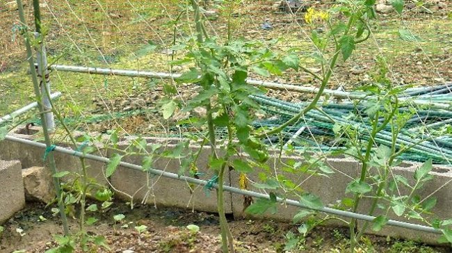 補修要だが挿木にした中玉トマトも成長し出し玉が出来だしたので