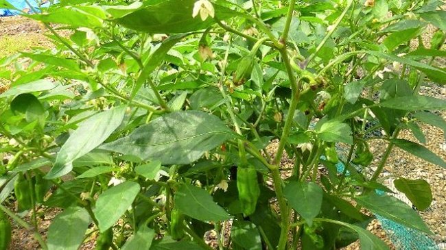 シシトウの葉が横に広がり実が出来だした。