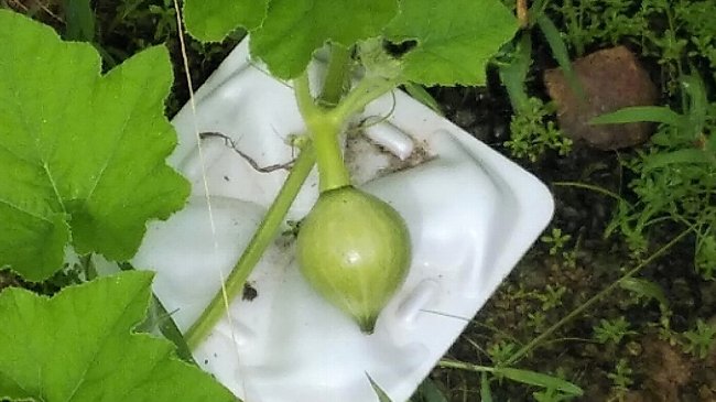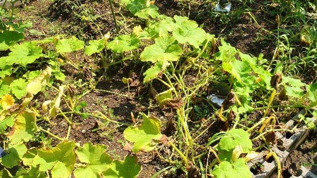 カポチュは苗を植え付けたところの葉が枯れだし、広がったツルの