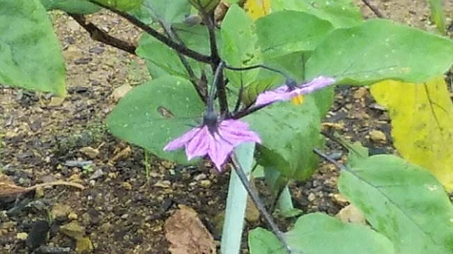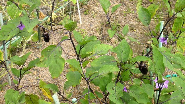 ナスビは小さいのが2~3本ぶら下がっているが、秋ナスになるのか
