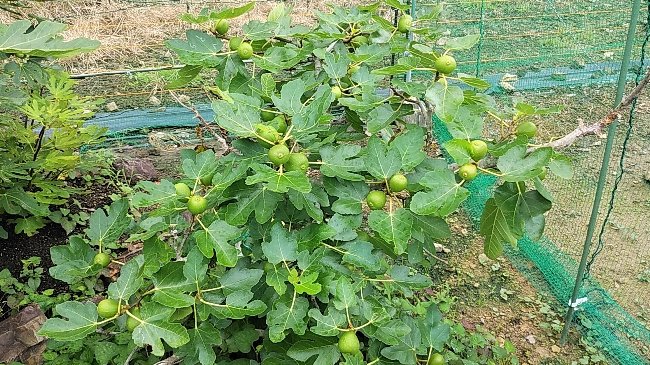 柿とイチジクにたくさんの実が付いている。