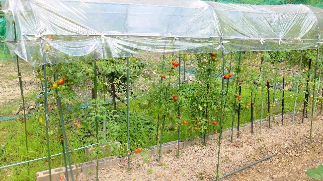 苗から育てたトマトは雨水除けカバーを掛けてあるが、挿木のトマトは