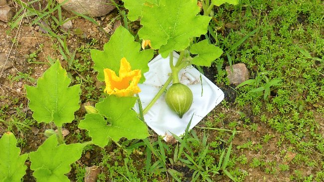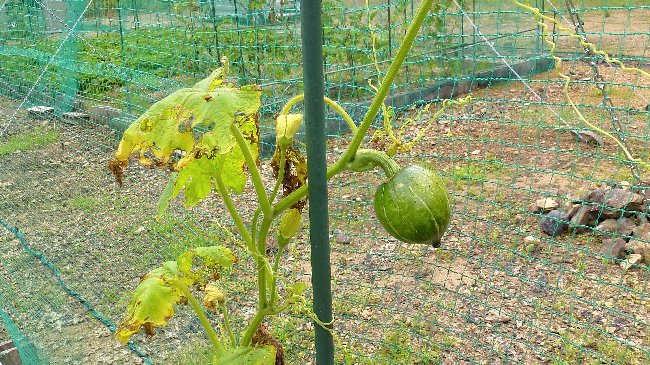 きくなっていている中で、坊ちゃんカボチャ1個を収穫した。