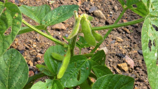 エダマメはまだ背が低いが、もう枝の間からサヤがたくさん出来ていて