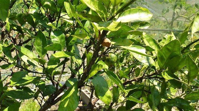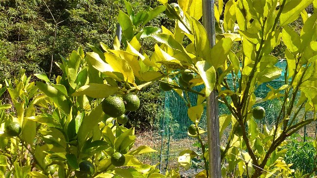 柑橘類はほとんど期待できないが、数本の木に少しながら実が育っている。