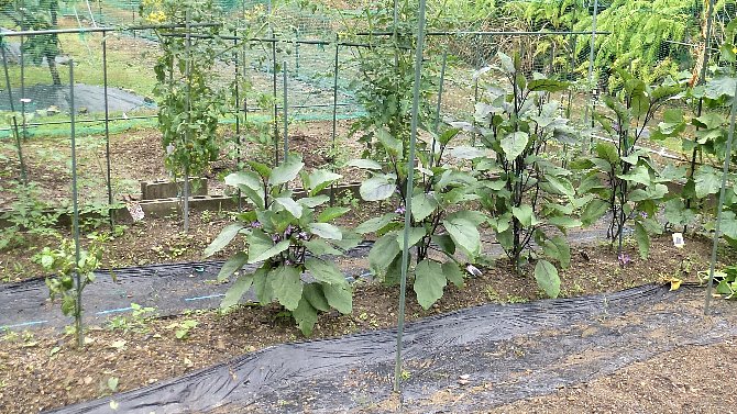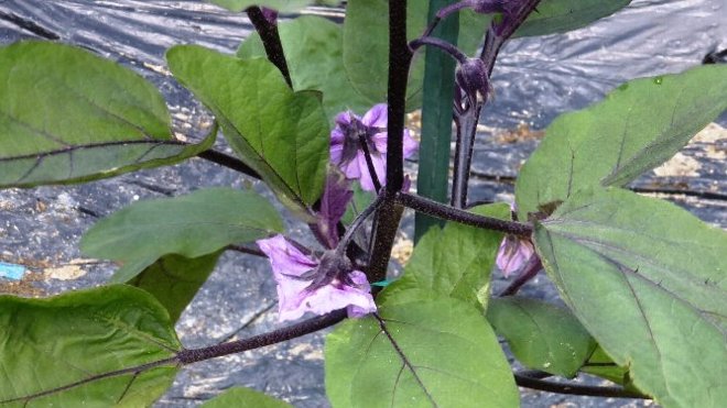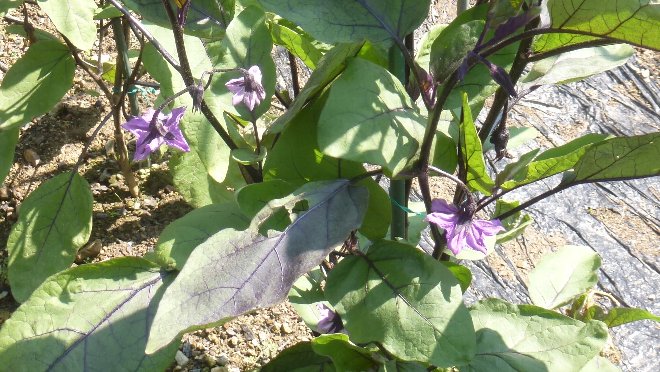ナスビ、水ナスは花がたくさん咲いているがまだ実にはなっていない。