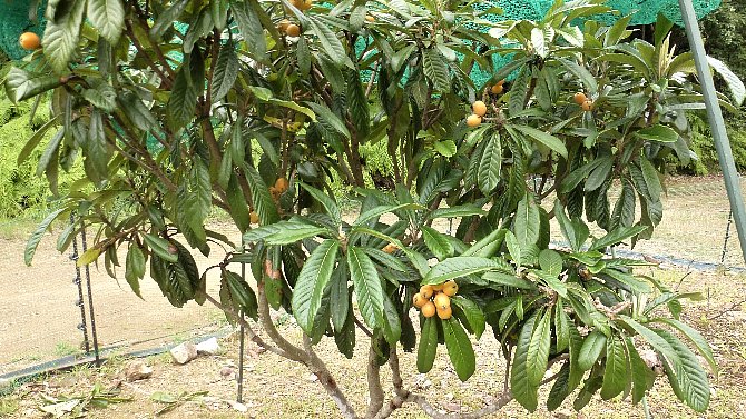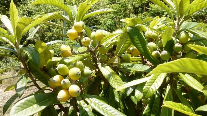 ビワはほとんどが黄色くなったが玉の大きさが小さく、これが2倍くらいなら