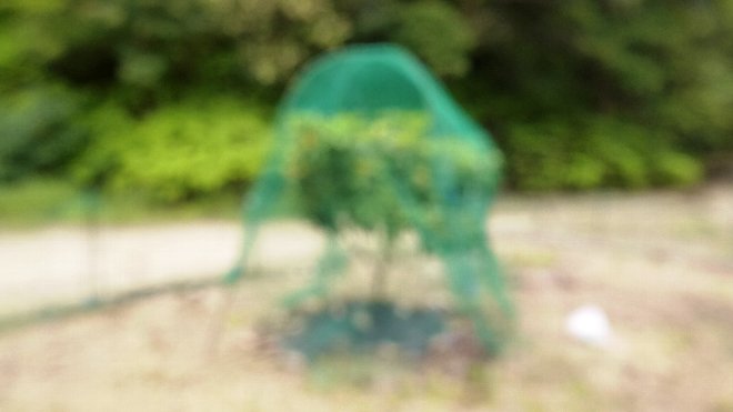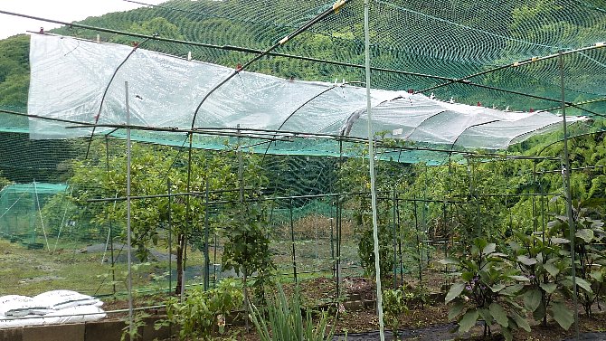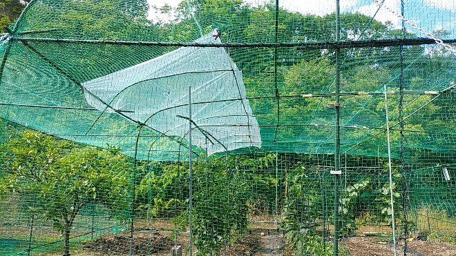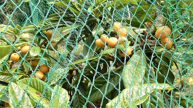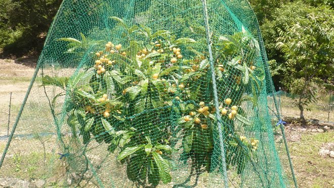 鳥害が出だしたビワは骨組みが残っていたので、以前柿にかぶせてあった