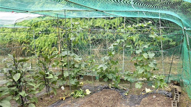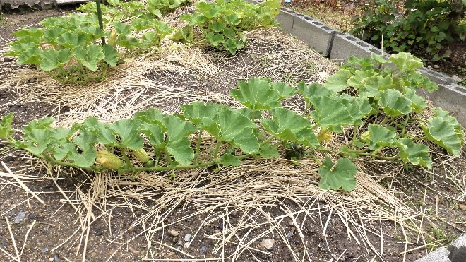 キュウリは数本大きくなりだしているが、あと二日ほど収穫は待つことにした。