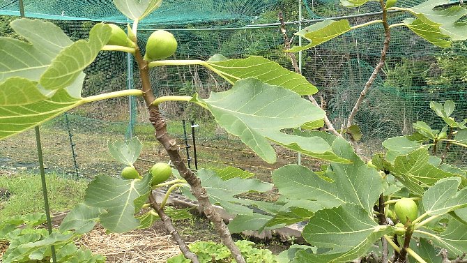 イチジクは挿木の1本を除いて4本に実がついて成長している。あとから