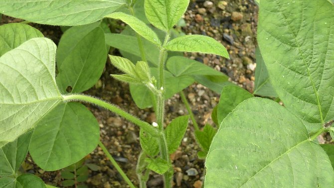 エダマメが20㎝ほどになったので先を切り止めることにする。
