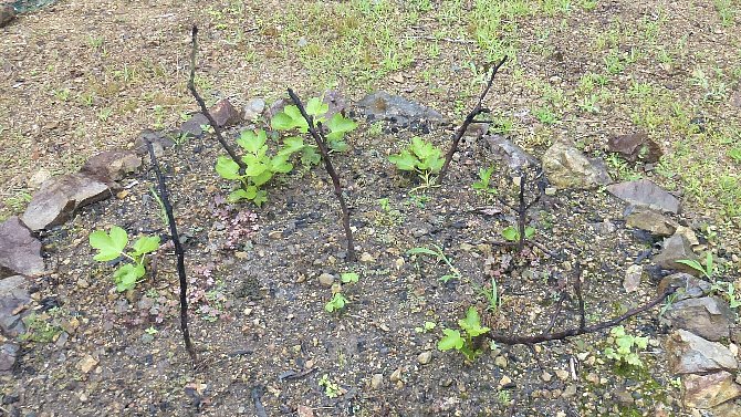 イチジクの挿し木はようやく根付いたのか木の根本から葉が出てきている。