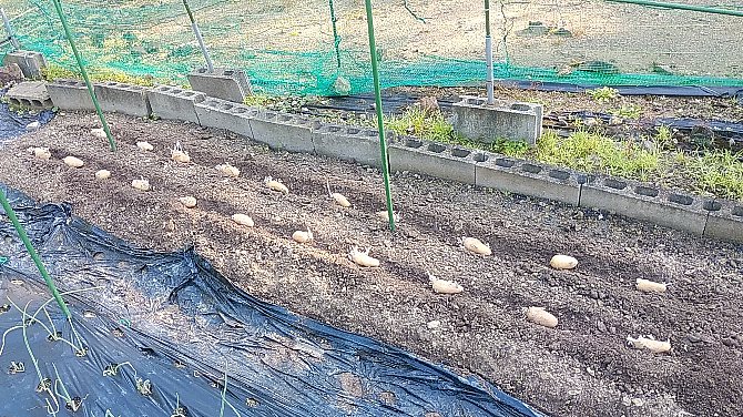物置に貯蔵してあったジャガイモに芽が出ていたため、遅めながら
