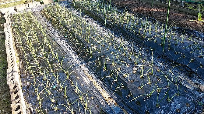 タマネギの苗は400本植え付け一斉に立ち上がっている。