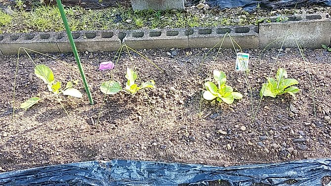 ハクサイ 2個とキャベツ2個の苗を植えたが、勧角がやはり狭かった感じ。