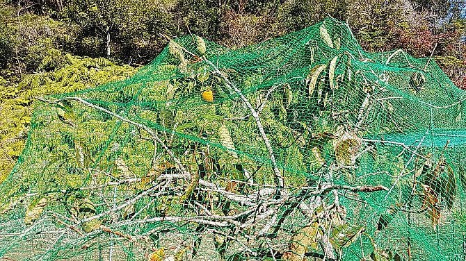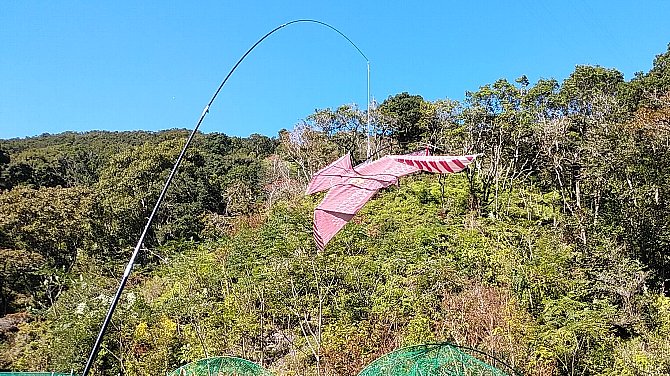 鳥除けのため今年設置したカイト鷹は、度重なる強風のためかボロボロ