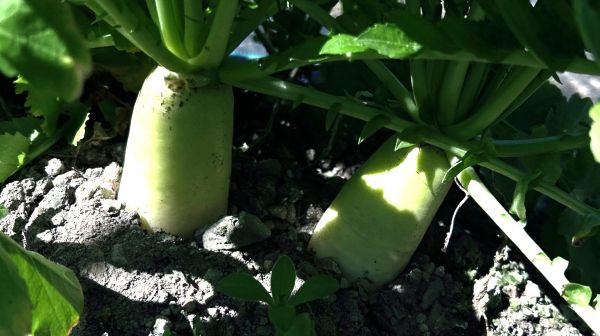 何度か種蒔きしたホウレンソウが大きく育っているので採った後また種を蒔く。