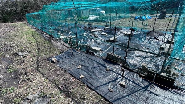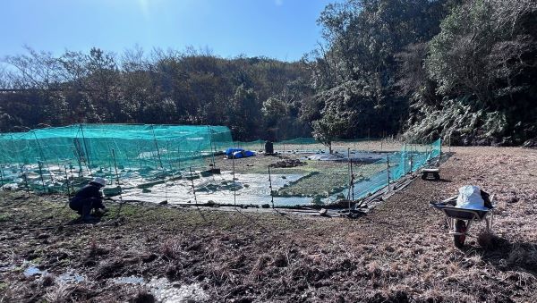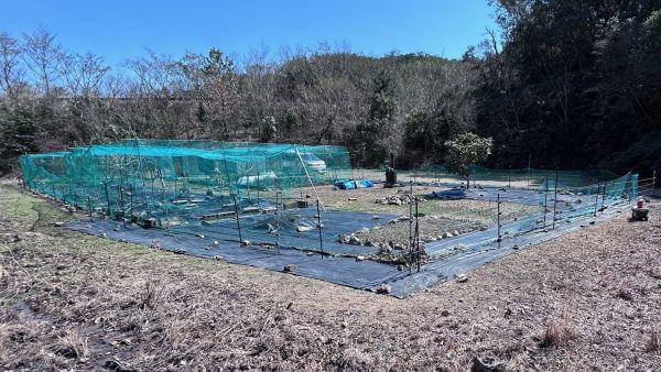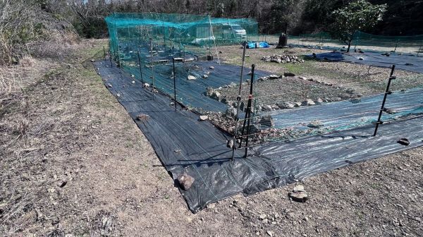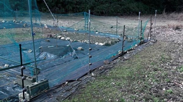 北側は川に沿ってイノシシがミミズを狙って掘り返すため、折角敷いた