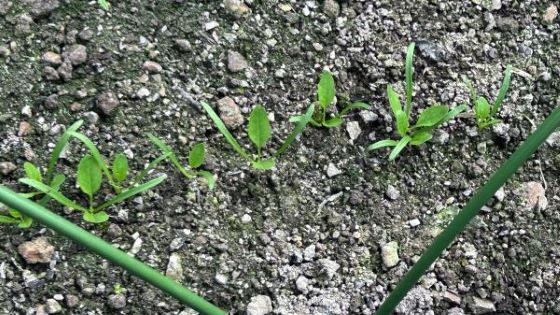 三回目の種まきのホウレンソウに芽がたくさん出ている。