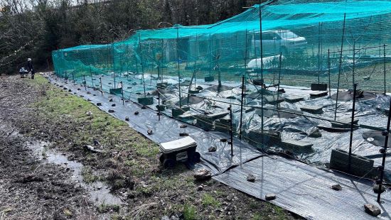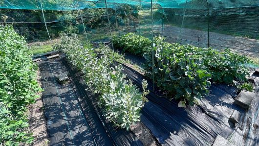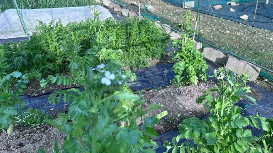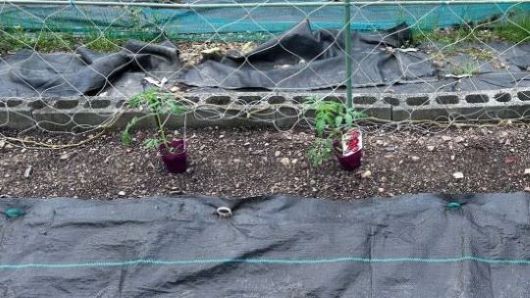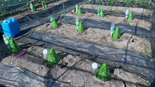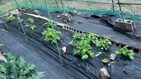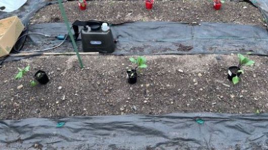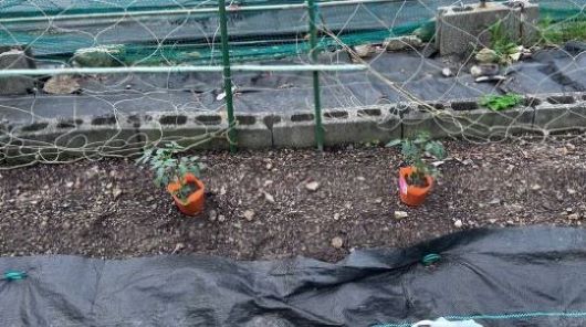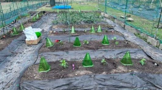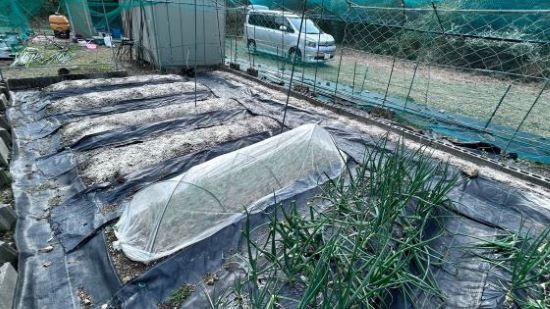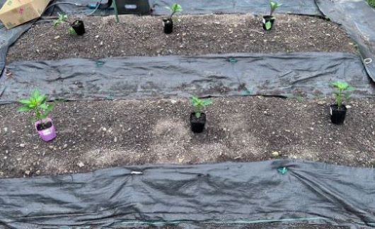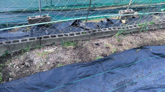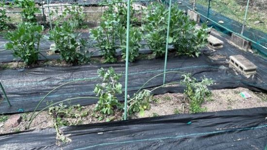 夏野菜の苗が売り出されだしたので防草シート張りを一時中止し、準備のため
