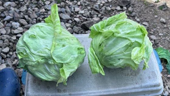 小ぶりながら最後のキャベツ2個を収穫し終了。