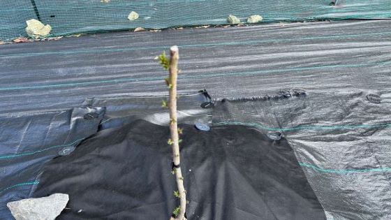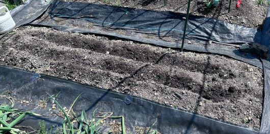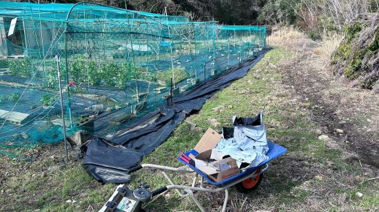 同時に畝間の防草シートを一旦取り外し溜まった土を取り除き張りなおした。