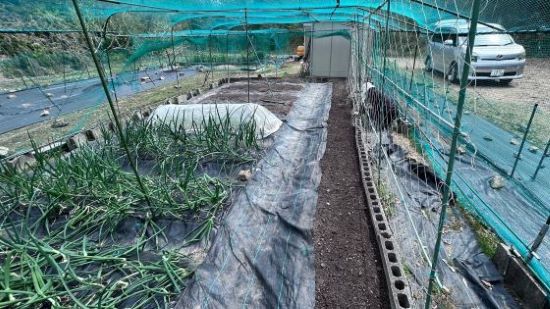 以前にサツマイモkの場所にキュウリを植えることにして、あとからツル用の