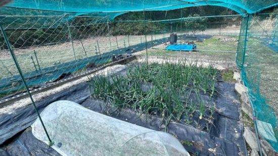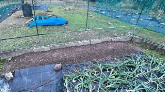 角に友人からもらったニラを二か所に植え付け。
