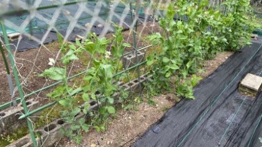 転倒でろっ骨を痛めたため農作業は10日程中断したため、スナックエンドウは良く成長していたが