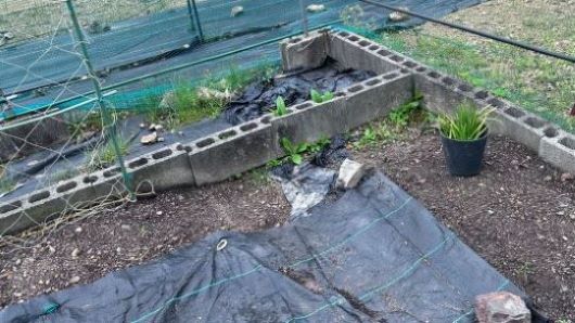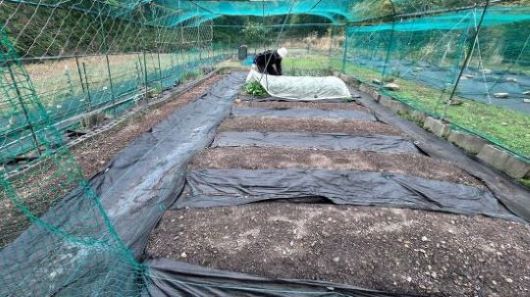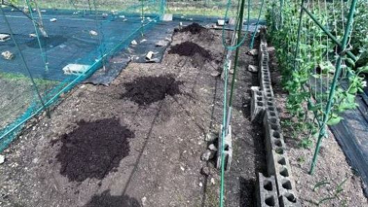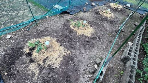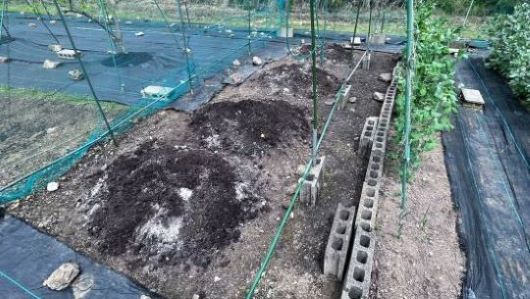ミカンを撤去した後に鶏糞と培養土を追加して、スイカと坊ちゃんカボチャ