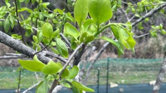 3本の柿の木に一斉に芽吹き葉が広がりだした。