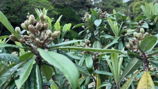ビワの実が一斉に丸くなりだした。