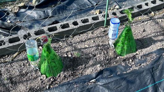 中華風よけプラカバーを購入しすべての苗にかぶせたが、すぐに