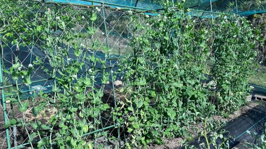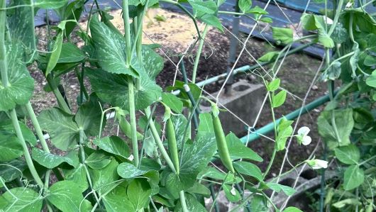 スナックエンドウはたくさん実ができだし、花も次々と咲いている。