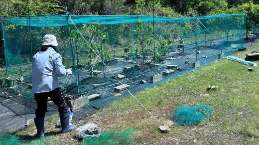 骨組みの南側網が寸足らずだったのでずらして修復実施。