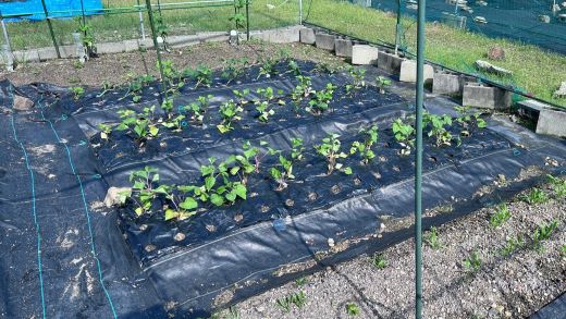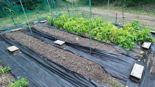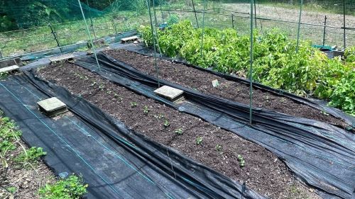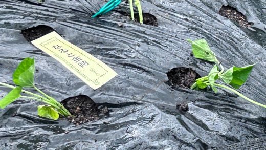 タマネギのあと3畝に25本ずつ植え付けた。鳴門金時を植えるのは初めて。