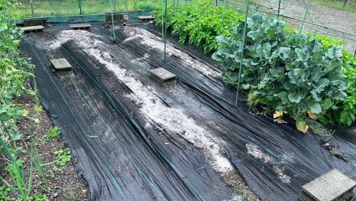 苦土石灰をまきいつもならこの後数日放置するのだが、体調不良のため