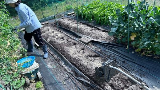 失敗したソラマメのあとに枝豆を植えるための準備で、
