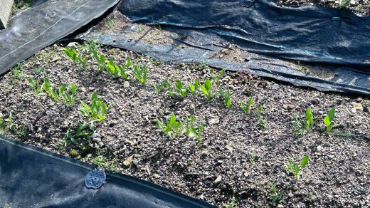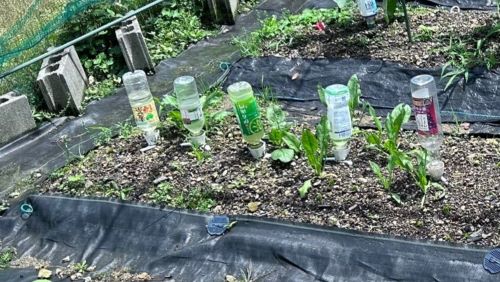 四度目に蒔いたホウレンソウは若芽が葉っぱに変わってきたので、また収穫できそう。