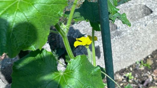 キュウリに何個か花が咲きだしたが、前回見た実は見つからず。