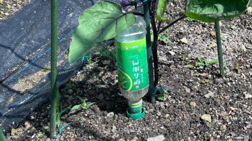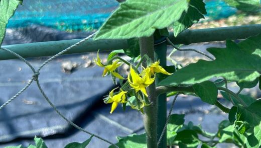 水ナスにも紫の花がさきだした。今年からHB101を各野菜に使っているが