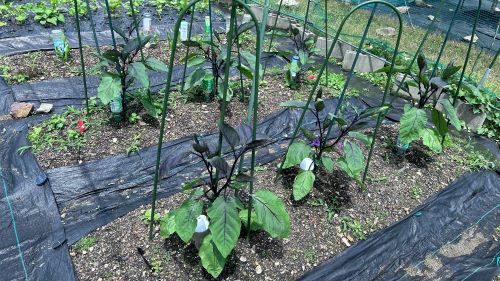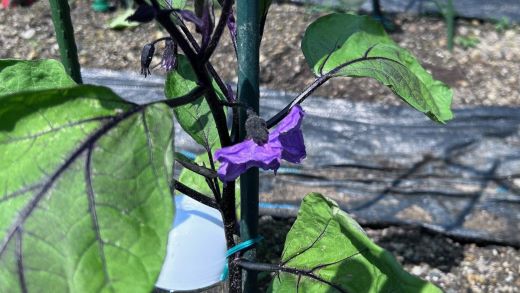 ナスビと水ナスにも紫の花がたくさん咲きだした。