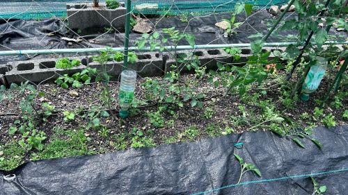 ミニトマトに脇芽がたくさん出てきたので、何本も挿し木にした。